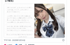 赶在2026年到来之前,上坂めい(上坂芽衣)在社群宣布引退!她在声明中是这么说的,在年底,她决定将自己4年的AV生涯画下句点:在这四年间她遇见了非常多的人也经历了各式各样的事情,对于一路上支持自己的朋友,上坂めい(上坂芽衣)心中充满了无限的感谢,接下来,她要踏上全新的道路,一面面对真正的自己,一面迈向人生的下一个阶段,感谢大家到现在为止的支持与陪伴,也衷心祝福大家往后的每一天平稳幸福: