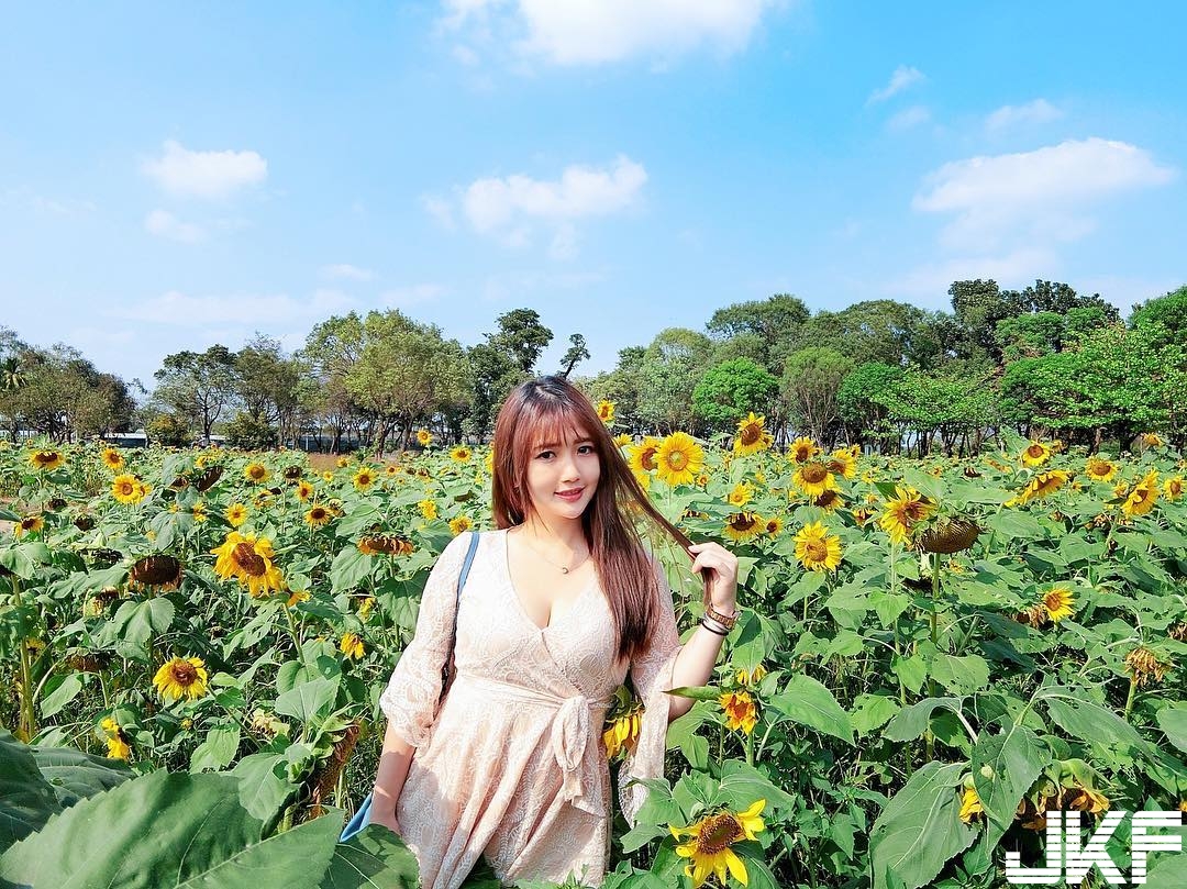 嗯?說好的賞花呢?相信許多紳士們的視線都跟狼哥一樣沒辦法從她的胸口移開吧!我們JKF女郎中的性感甜心 莫葵 Vika 日前去向日葵花田玩,不過她穿的低胸爆乳洋裝完全展現出她的性感好身材,深邃事業線應該會讓附近男士們無法專心賞花,平時就笑容甜美可愛的她不管到哪裡都會留下性感的身影呢!