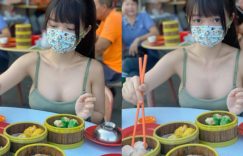 【迈博娱乐】以形補形!巨乳正妹挺「大白包子」吃港點 乳量快要溢出來啦!