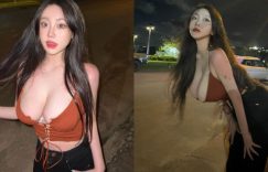 【迈博娱乐】21歲「白皙巨乳嫩妹」關島度假穿好辣!路邊「彎腰倒奶」小背心包不住啦!