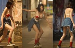 【迈博娱乐】「 短髮巨乳正妹」深夜街頭溜滑板!超清涼爆乳內衣+小熱褲,滑到哪都搶眼!