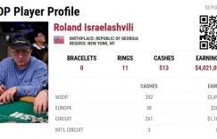 【EV扑克(www.evp69.com)报道】2005年,Roland Israelashvili在当年WSOP的一场金手链赛事中打进奖励圈。他在一场3000刀买入的无限注德州扑克赛事中获得了第31名,以及$9,755的奖金。在接下来的20年里,他总共在240场金手链赛事中打进奖励圈,却没有获得任何一条金手链。240个奖励圈这个纪录,让他成为了所有没有金手链的牌手中金手链赛事奖励圈数量最多的人,同时也是所有牌手中(无论有没有金手链)排名第二,唯一比他多的是拥有七条金手链、拥有264次金手链赛事奖励圈的“丹牛”Daniel Negreanu。