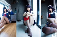 【迈博娱乐】爆乳Coser化身「巨乳霞之丘詩羽」薄絲黑絲襪+水手服 超邪惡視角根本逼人犯罪啊
