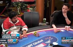【EV扑克(www.evp66.com)报道】在本周的牌局中,我们分析了Hustler Casino 24小时现场高额常规桌游戏流中的一个巨额彩池,Alan Keating用口袋A从Santhosh Suvarna身上获得了最大价值。