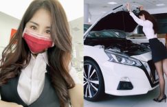 【迈博娱乐】香車就要配美人!Nissan 美女業務「芳芳」大露「黑絲美腿」狂吸目光