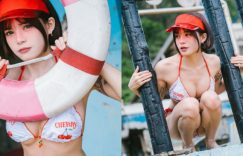 炎熱的夏天最愛看到這種畫面!眼前卡哇伊又清甜的比基尼辣妹就是「容容Rong」,穿著白底紅邊的綁帶比基尼,還有著櫻桃的可愛樣式,在海港邊擺弄著誘人的姿態,性感凹凸的曲線一覽無遺,加上那深邃又有神的眼神與氣質,讓人內心爆發了滿滿的戀愛感! (