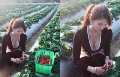 【迈博娱乐】採草莓季節到了!正妹彎腰採莓「鮮嫩長輩」掉出,網友大喊:想吃草莓了!