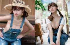 【迈博娱乐】淘氣正妹「HANHAN」充氣吊帶褲,「兇猛奶量」天下男人來征服!